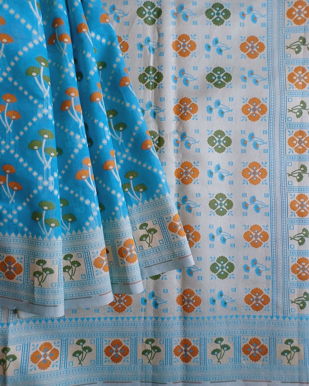 Fabric- Pure Soft Cotton With traditional Banarasi floral motifs