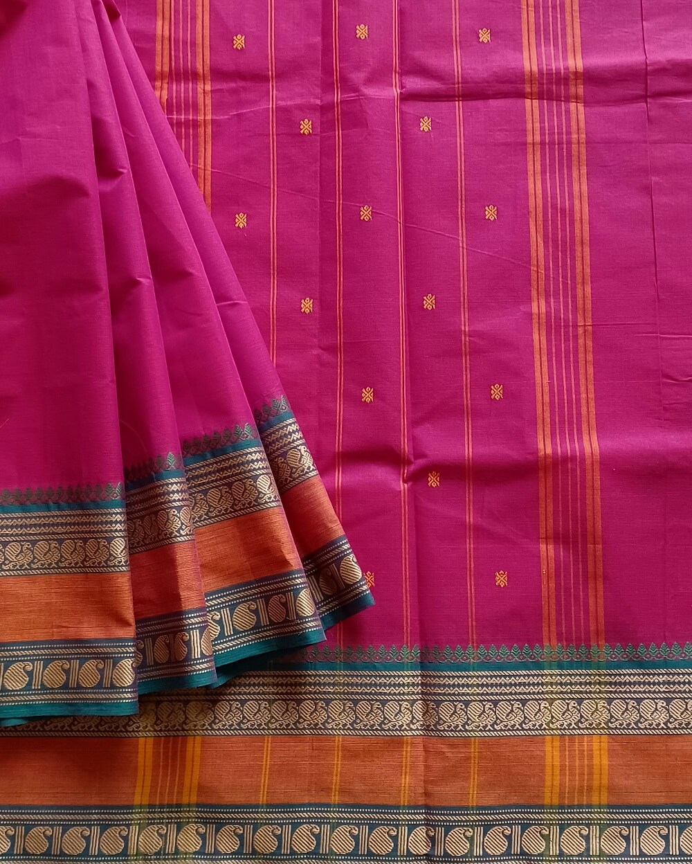Fabric- Pure Kanchi Cotton Saree, Butta Saree with Thread Border