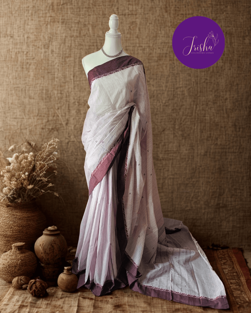 Border- Thread Border in contemporary motifs. Simple and best for minimal work saree lovers