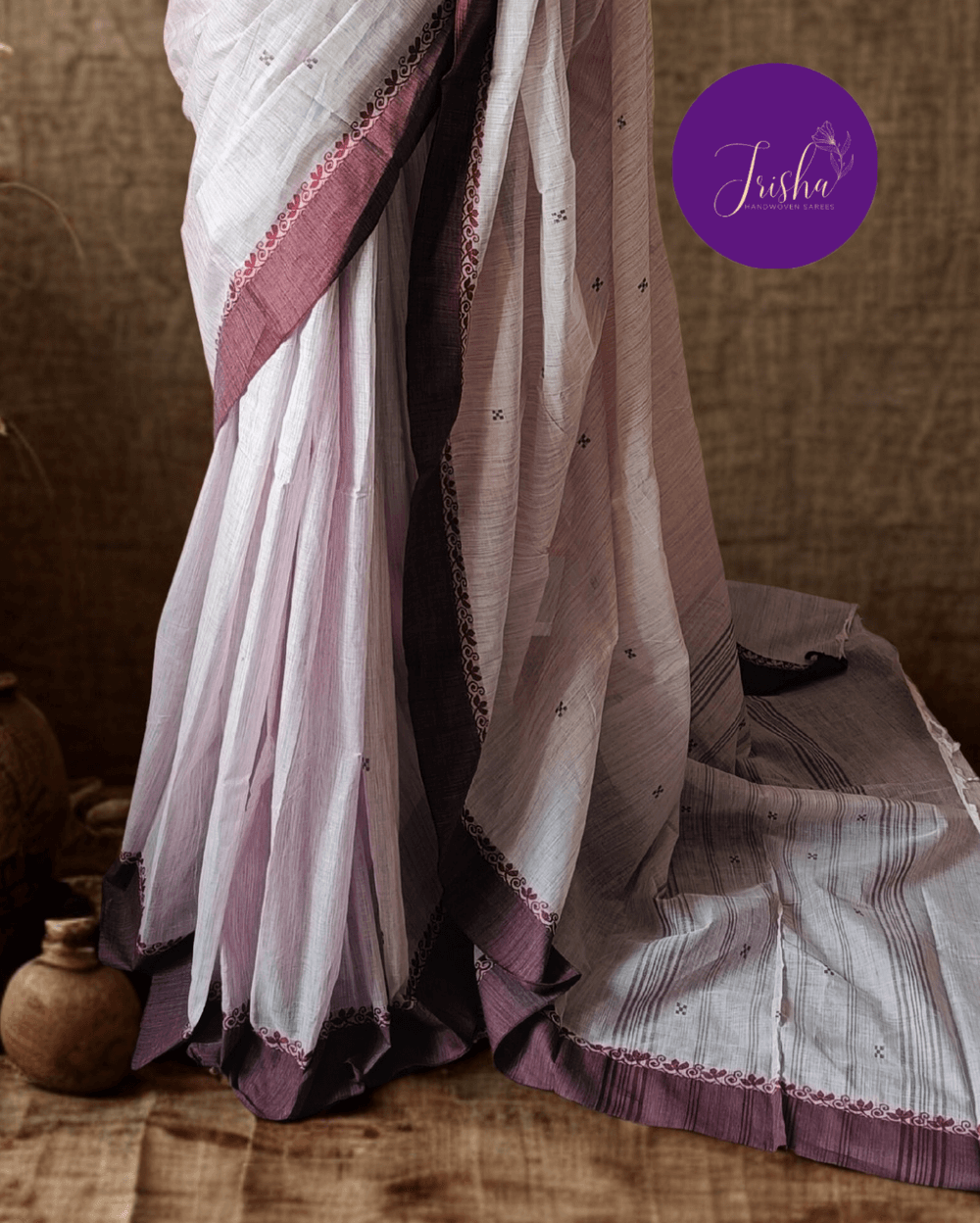 Fabric- Handloom Pure Kanchi Cotton Saree, Butta Saree with contemporary small Thread Border