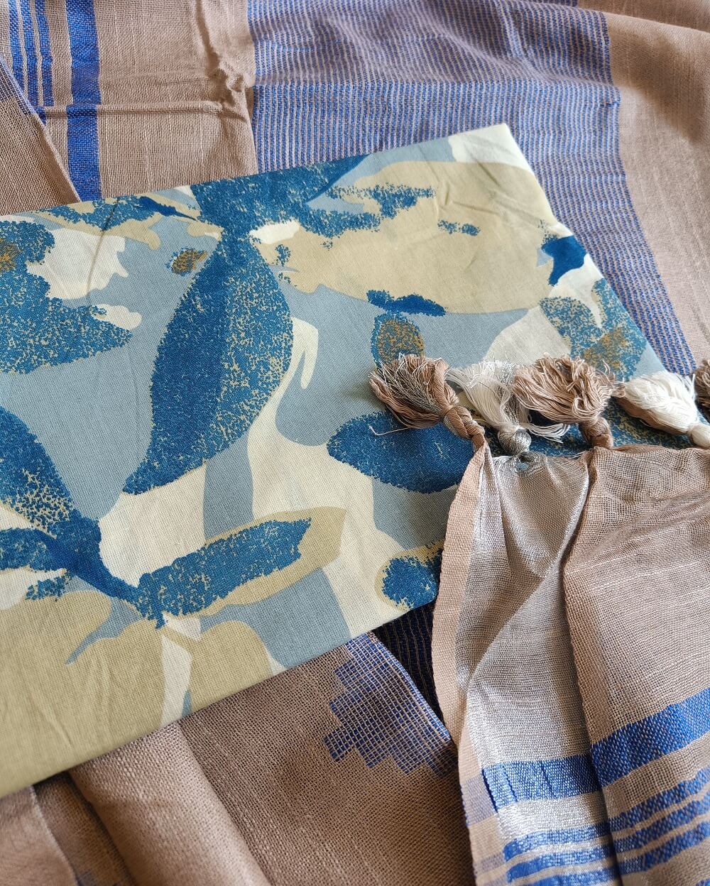 Blouse piece- This saree comes with a plain running linen blouse piece of 0.80 m along with an additional handcrafted hand block printed mul mul cotton blouse piece of 1 mtr. Approx that contrasts with the saree shade