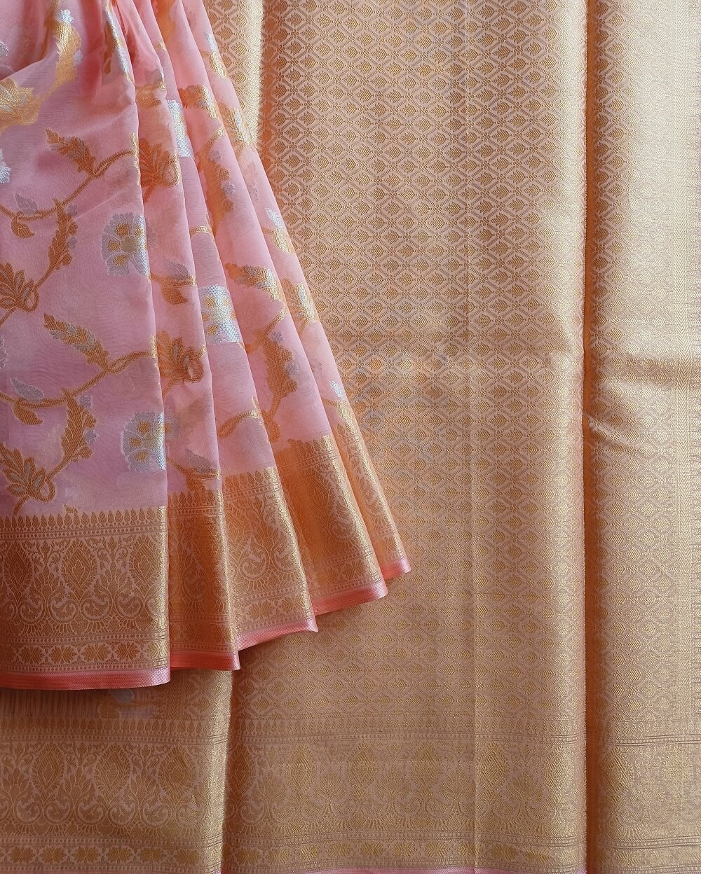 Organza Saree – The very trending fabric sarees currently! Organza Sarees has recently secured its place amongst all traditional silk fabrics and suits the taste preference of all age group. The light sheen and sheer texture of the silk has stolen everyone’s heart.