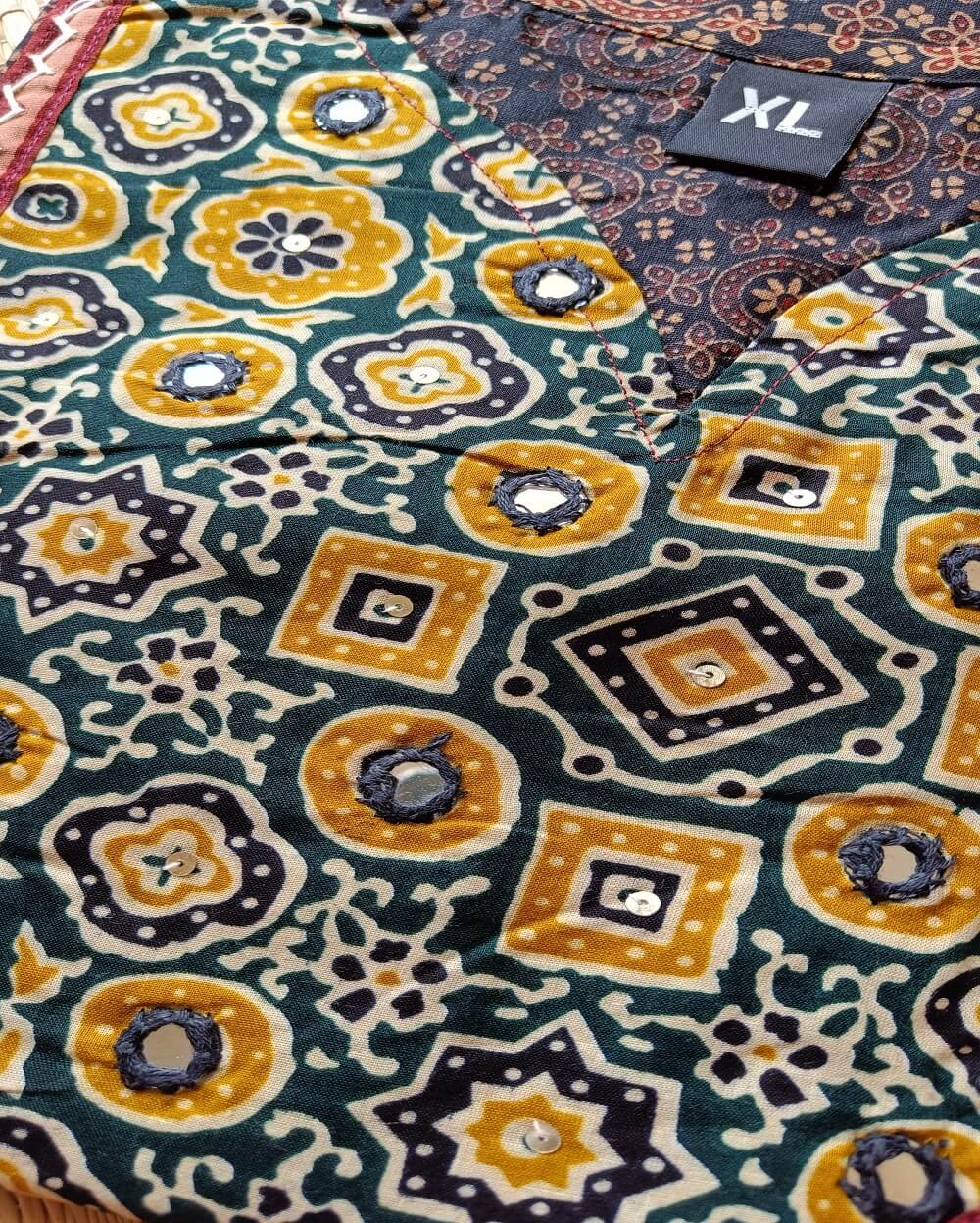 Shades- Black Kurti with Ajrakh prints and Kutch mirror work (Hand work)
